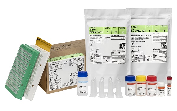 Наборы реагентов «NOVAprep miR-Cervix» предназначены для выявления предраковых состояний и рака шейки матки путем определения уровня экспрессии специфических микроРНК в биологическом материале. Предназначены для проведения дифференциальной диагностики дисплазии цервикального эпителия легкой и тяжелой степени (LSIL vs. HSIL), включая начальные этапы развития рака шейки матки (carcinoma in situ, CIS). Наборы «NOVAprep miR-Cervix» позволяют выявлять специфические изменения профиля микро-РНК трансформированной клетки, которые отражают этапность заболевания и могут иметь диагностическое и прогностическое значение, а также проводить оценку эффективности проводимой терапии. Определение экспрессии микроРНК с помощью набора «NOVAprep miR-Cervix» дополняет традиционные методы диагностики (стандартная/ жидкостная цитология, ВПЧ-тест). Набор включает комплект для забора биологического материала, реагенты для выделения нуклеиновых кислот и реагенты для проведения ОТ-ПЦР и ПЦР.