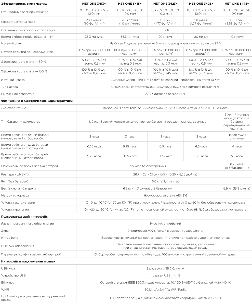 Серия MET ONE 3400+ представлена моделями счетчиков со скоростью отбора проб 28,3 л/мин, 50 л/мин и 100 л/мин. Таким образом, 1 м3 пробы можно проанализировать всего за 10 минут.