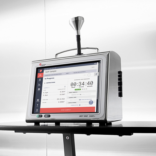 Портативный счетчик аэрозольных частиц MET ONE 3400+ представляет собой новое поколение длинного ряда портативных аккумуляторных счетчиков частиц в воздухе, работающих на принципе рассеяния света, MET ONE (LSAPC), предназначенных для отбора проб воздуха, подсчета и определения размера частиц и передачи счета на объем в полном соответствии с ISO21501-4. Аппарат имеет 6 каналов для определения размеров частиц в диапазоне от 0,3 мкм до 10 мкм, используется преимущественно для классификации и мониторинга чистоты воздуха в отношении концентрации взвешенных в воздухе частиц в чистых помещениях, например, предназначенных для производства стерильных фармацевтических и биофармацевтических препаратов, а также в полупроводниковой промышленности. Новый облик прибора и расширенный пользовательский интерфейс с улучшенной эргономикой предназначены для удобства работы, подключения и очистки.